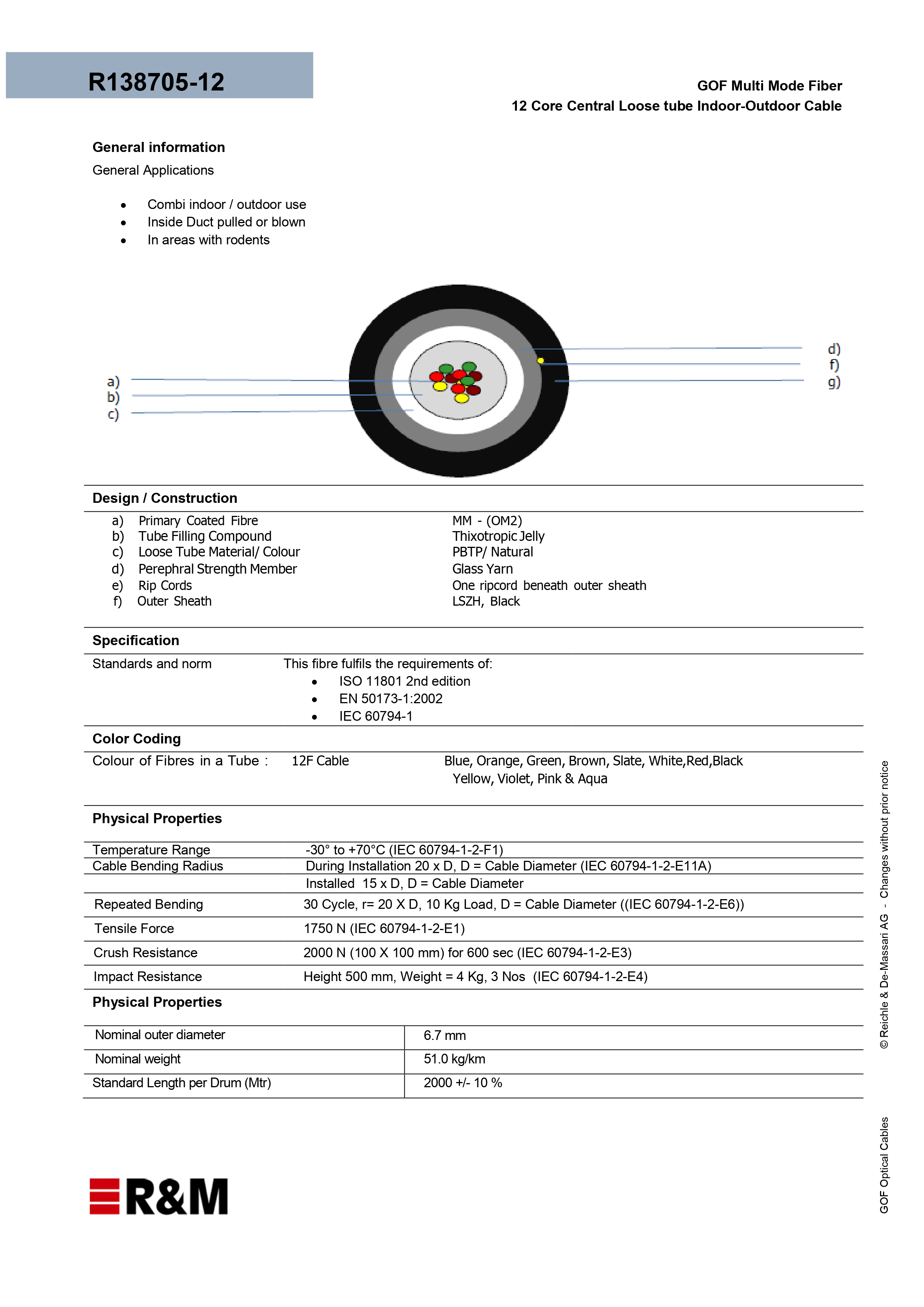 R&M 12 Fiber LSOH SLT BLACK MULTI MOD OM2